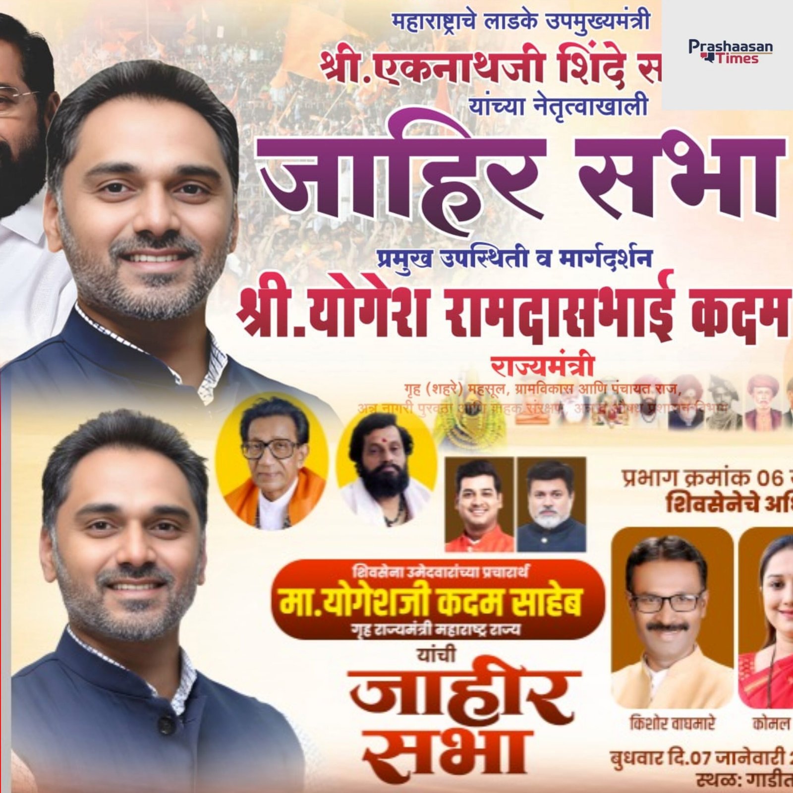त्यानंतर सायंकाळी ७.०० वाजता, प्रभाग क्रमांक ६ (येरवडा–गांधीनगर) येथे शिवसेनेचे उमेदवार किशोर चंद्रकांत वाघमारे, कोमल अभिजीत वाघचौरे, स्नेहल सुनील जाधव आणि आनंद रामनिवास गोयल** यांच्या प्रचारार्थ गृहराज्यमंत्री योगेश कदम यांची जाहीर सभा आयोजित करण्यात आली आहे. या सभेला डॉ. नीलम गोऱ्हे, माजी आमदार रवी धंगेकर, अजय भोसले तसेच युवासेना प्रदेश सचिव किरण साळी उपस्थित राहणार असून, विकास, सुरक्षा आणि लोकहिताचे मुद्दे ठळकपणे मांडले जाणार आहेत.